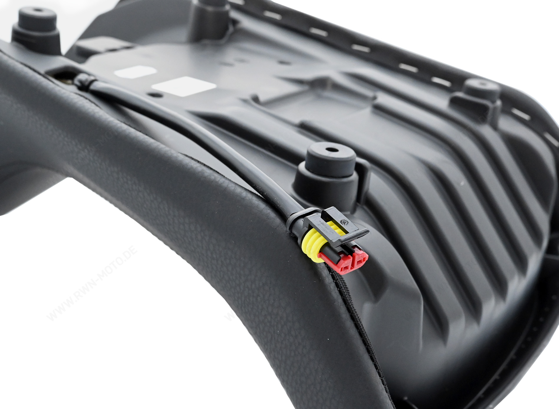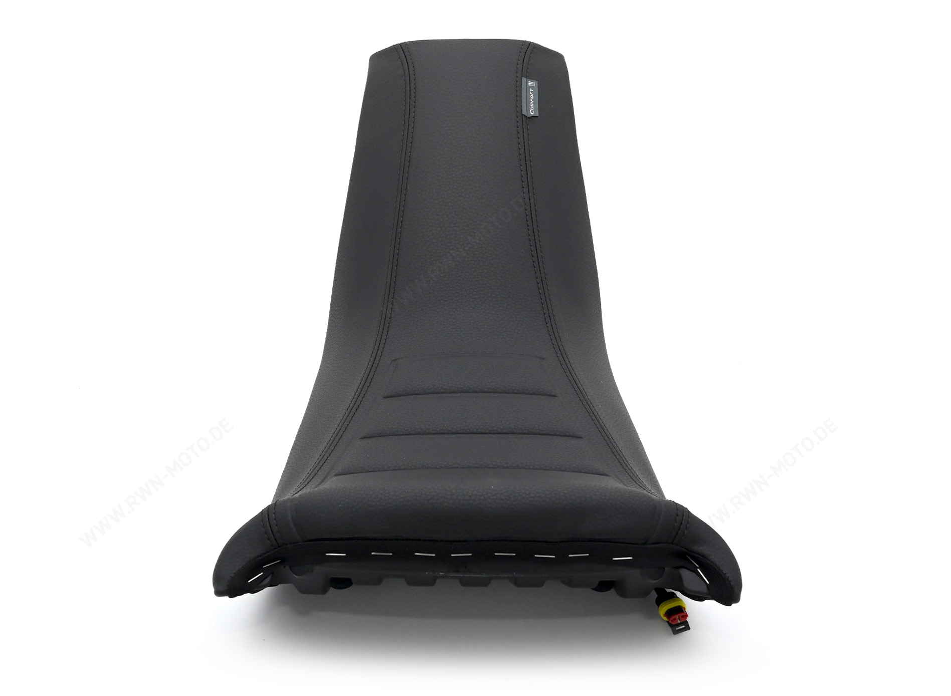 The heated comfort seat is designed for the colder season. The 3 adjustable temperature levels can be easily selected via the handlebar controls. The seat has 3D inserts that improve weight distribution and overall comfort. Seat position = standard height