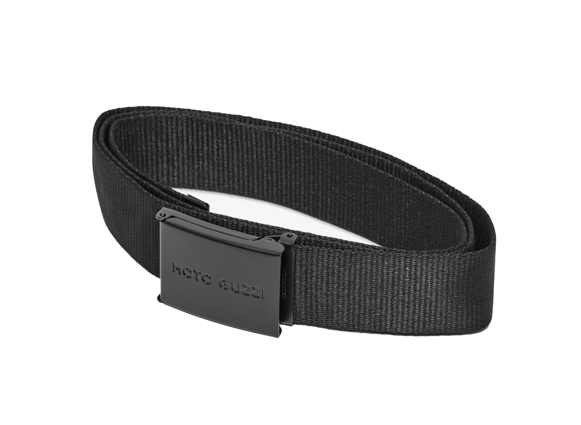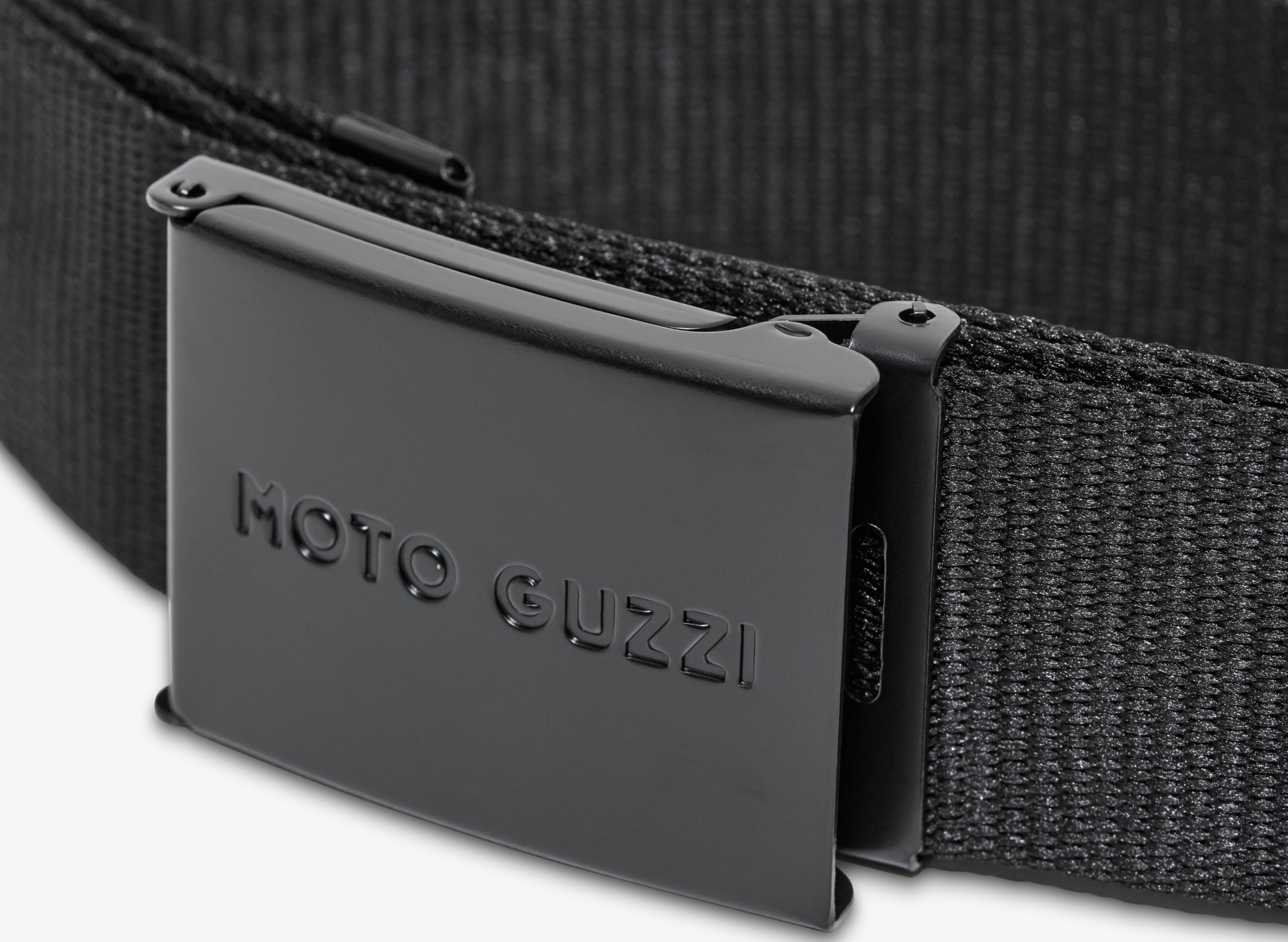 High-quality, military-inspired belt made of polyester with a robust metal buckle. The black buckle with metal tip gives it a modern and robust touch. The MOTO GUZZI logo, highlighted by the embossing, adds a distinctive element to this versatile accessory.