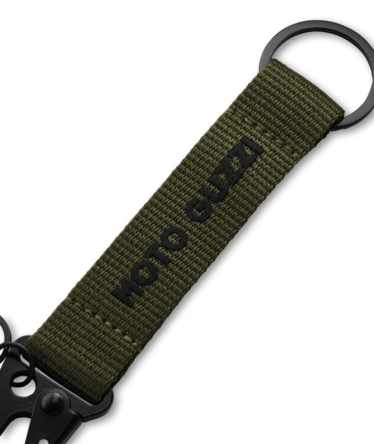 Key ring with metal ring (35 mm) and carabiner, which has a high-quality rubber print on one side. Dimensions: 2.5 cm x 18 cm.