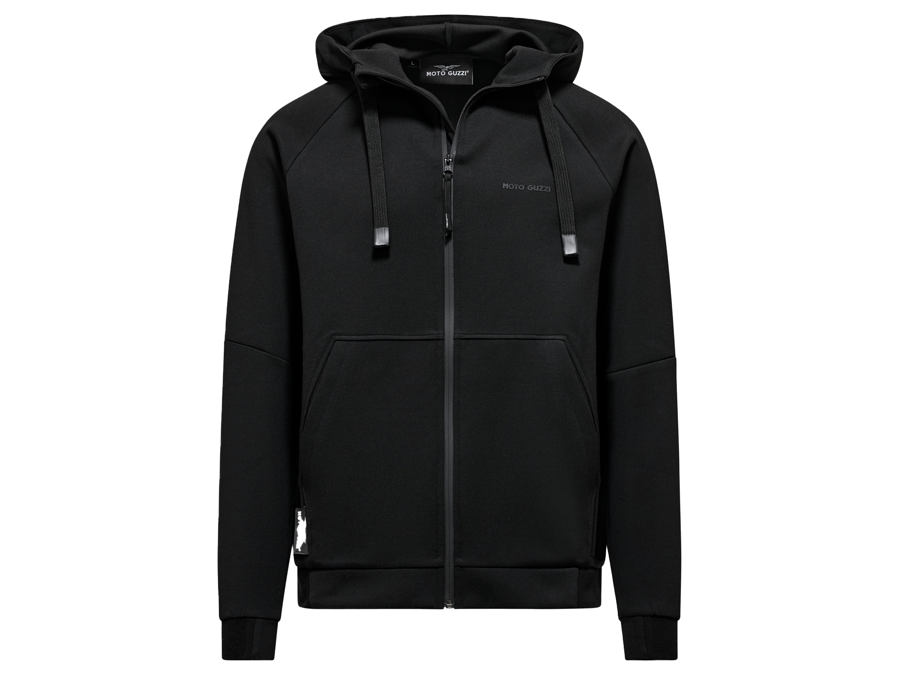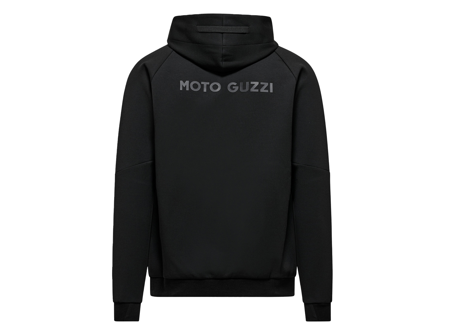Sweatshirt made from scuba fabric with rubberized MOTO GUZZI print on the chest and back. With adjustable hood, full-length zipper and kangaroo pockets. Raglan sleeves, a sporty reinterpretation of a menswear classic. The MOTO GUZZI logo sewn onto the side adds a distinctive touch, while the contrasting double fabric cuffs and hem ensure style and comfort.