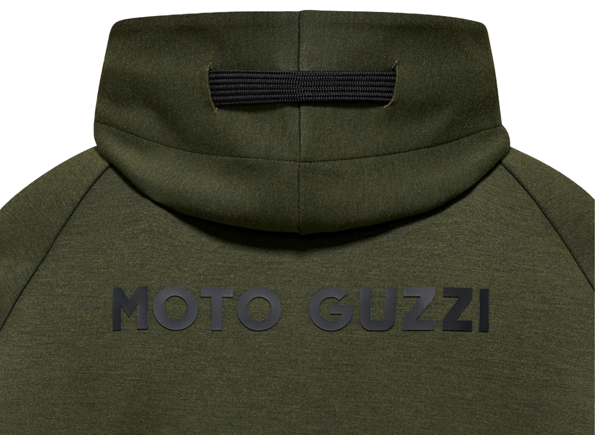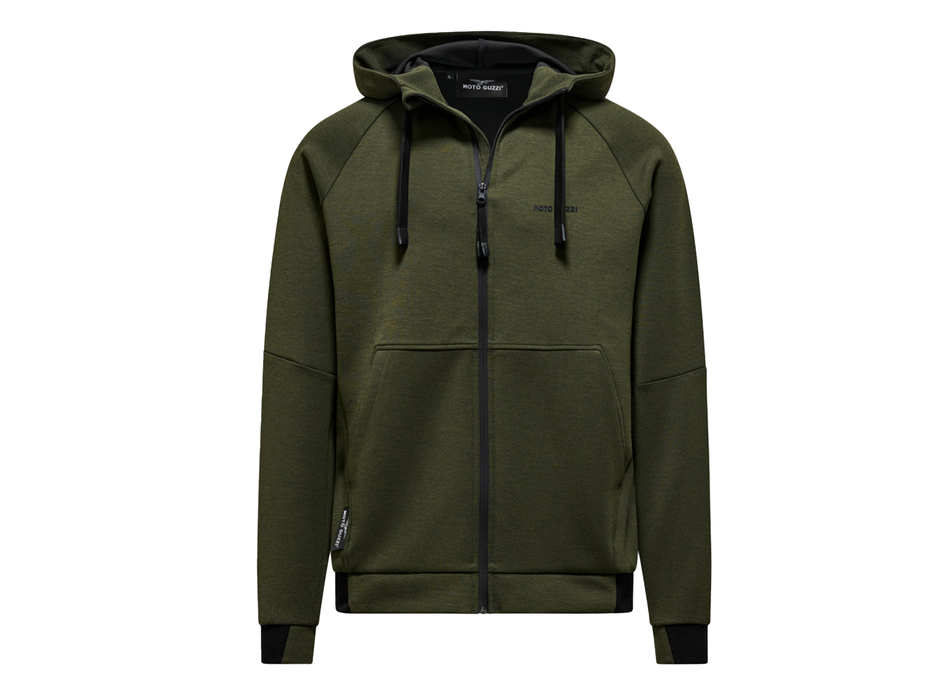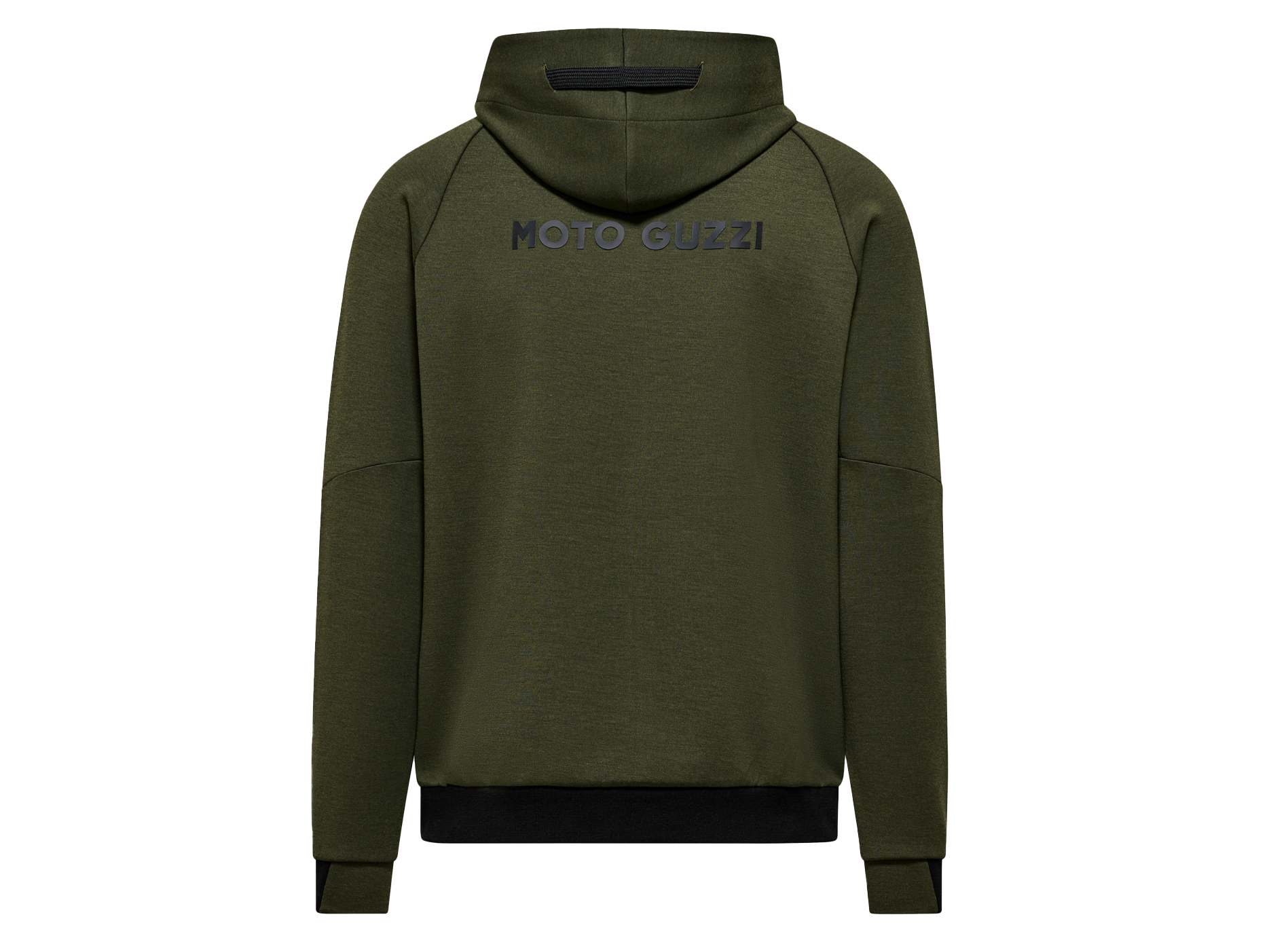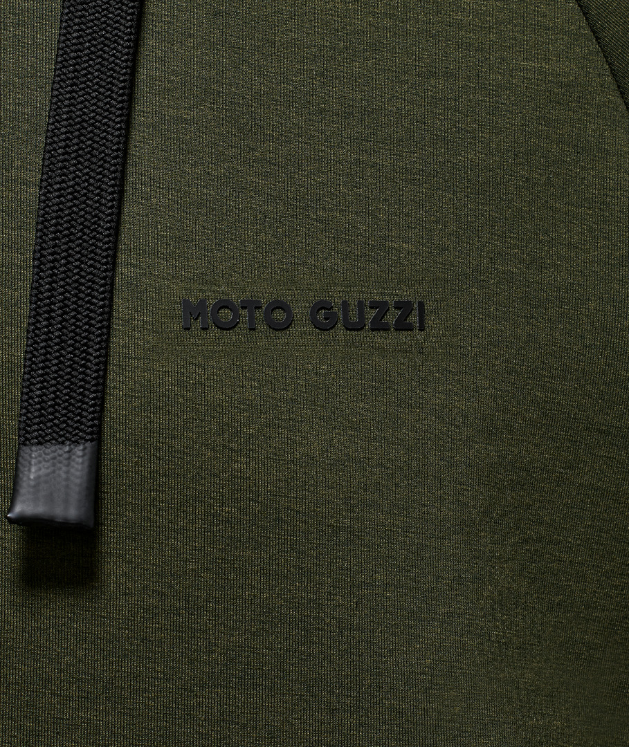 Sweatshirt made from scuba fabric with rubberized MOTO GUZZI print on the chest and back. With adjustable hood, full-length zipper and kangaroo pockets. Raglan sleeves, a sporty reinterpretation of a menswear classic. The MOTO GUZZI logo sewn onto the side adds a distinctive touch, while the contrasting double fabric cuffs and hem ensure style and comfort.