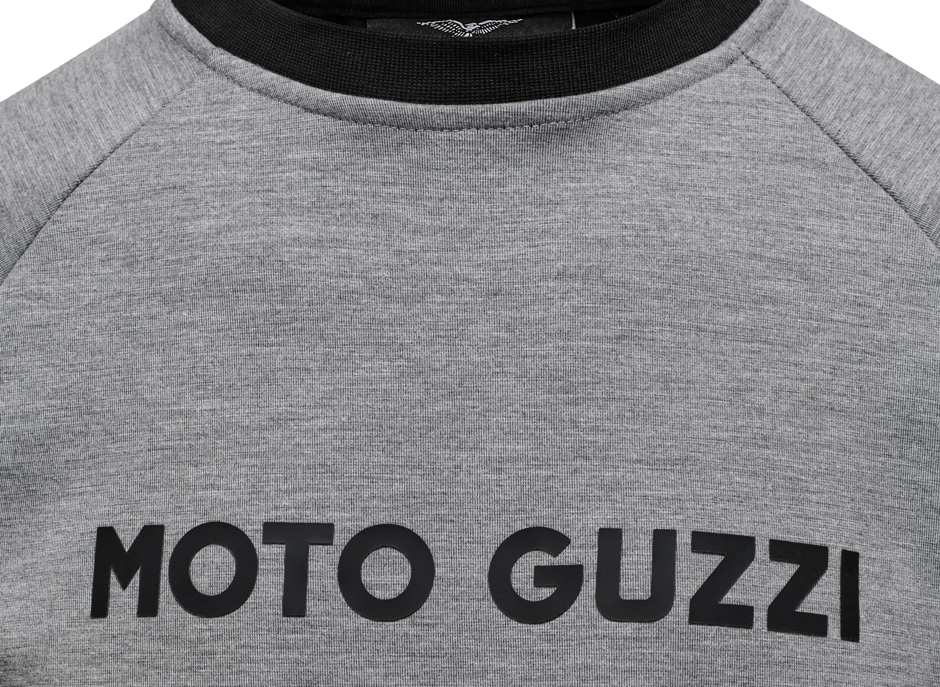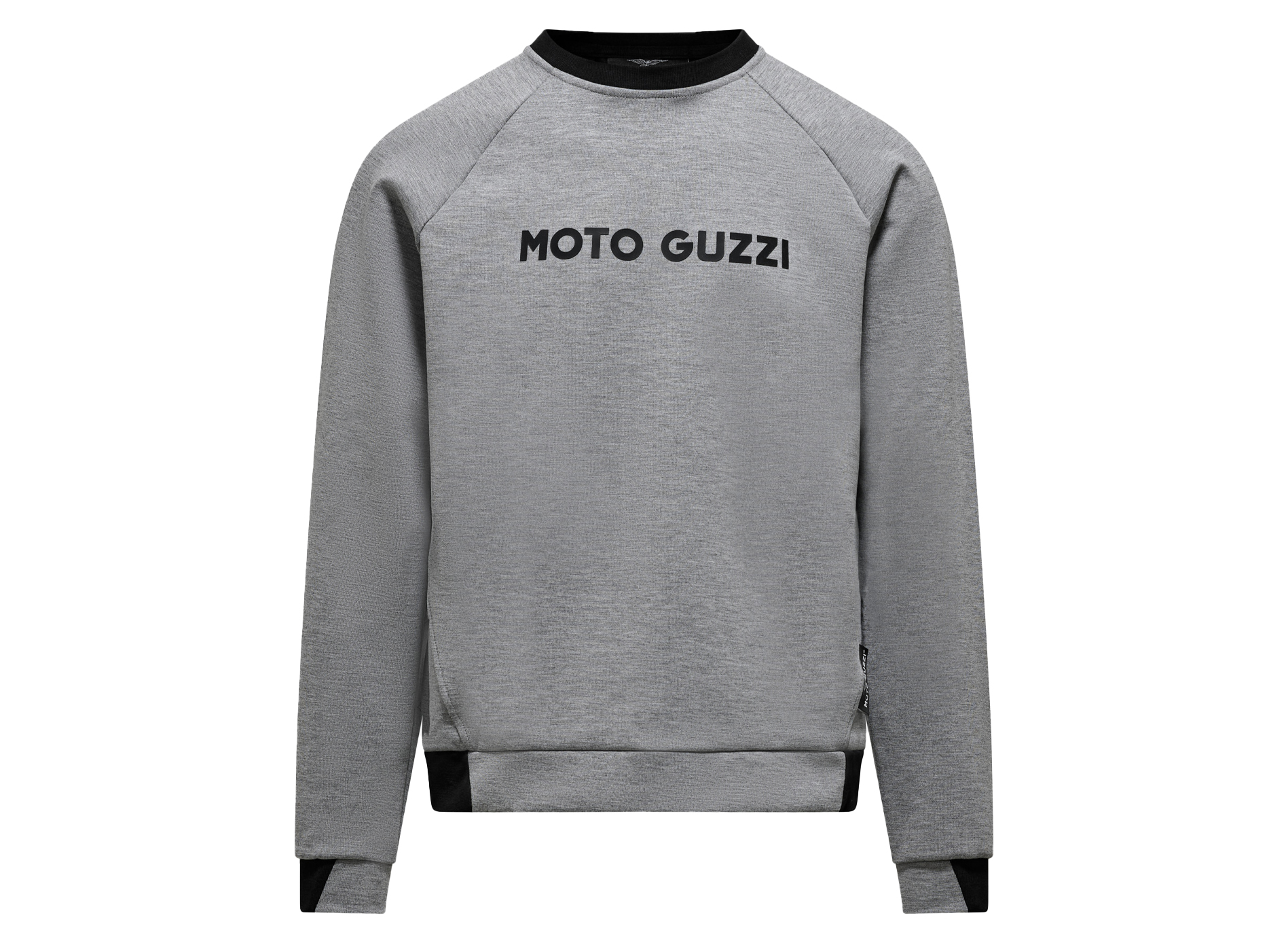 Sweatshirt made from scuba material with a striking rubberized print on the chest and back. The woven MOTO GUZZI logo sewn onto the side adds a special accent. Round neckline in a contrasting ribbed look. Raglan sleeves, contrasting double fabric cuffs and hem ensure style and comfort, making it an ideal garment for brand lovers.